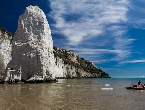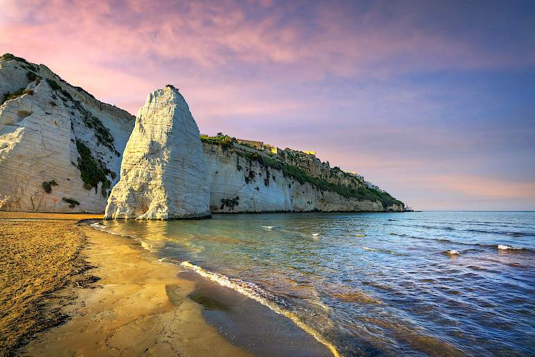 Le spiagge di Vieste sono annoverate tra le più belle d'Italia, con sabbia dorata, grotte nascoste e scogliere frastagliate: un paesaggio unico e suggestivo.